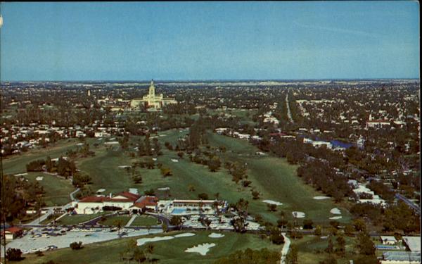 CORAL GABLES, FLORIDA The beautiful and challenging Biltmore Golf Course with the Veterans Hospital in the background. Scenic Vendors, Hallandale, Florida. Photo Courtesy of Goodyear Tire & Rubber Co. dukane press hallandale florida #1167