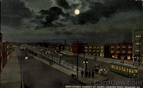 Penn. Street Viaduct, Open for traffic Nov. 14th 1913. Length 1350 feet, Width 80 feet. Total Weight of material 111,505,448 pounds. Paved with wood blocks.