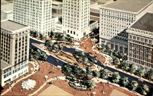 | This beautiful pedestrian plaza is located in the heart of downtown Youngstown and was designed for the comforts and convenience of the public in a most relaxed atmosphere. Its curved brick walkways, fountains, trees and beautiful lighting fixtures provide the setting for concerts, exhibits and other exciting civic events. |