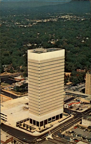 | This 25 story building, a Greenville, S.C. landmark, was completed in 1966. State's tallest building at 325 feet, its steel frame is covered with precast concrete panels and white Georgia marble. Six of its floors are occupied by Daniel Construction Company, builder and owner. It is all-electric and can handle 3000 telephones. |