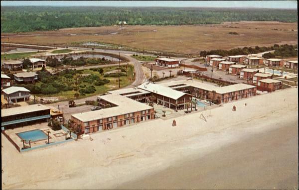 Air view of the luxurious Litchfield Inn, and all-year beach front resort hotel. In the right of photograph are the privately owned Litchfield Villas.