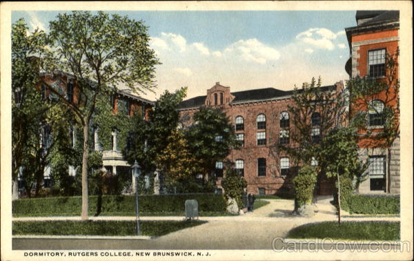 Front: DORMITORY, RUTGERS COLLEGE, NEW BRUNSWICK, N. J. Back: PUBLISHED BY POST CARD DISTRIBUTING CO., PHILADELPHIA, PA. MADE IN U. S. A. AND CANADA. A-55211 C. T. AMERICAN ART