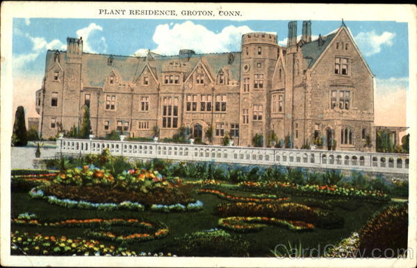 Front: PLANT RESIDENCE, GROTON, CONN. Back: Pub. by J. Solomon, New London, Conn. to work nell COEMUSA NOCK 13 AM 1937 CONN RANKLING mast Mrr M. J Repich Monson mass 74 Main St JS