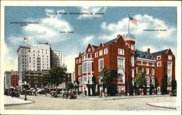 Club Row, Minneapolis, Minn. Three of the largest downtown clubs. There are 83 clubs occupying permanent quarters in Minneapolis. These three clubs alone embrace more than 5000 members.