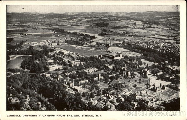 Front: CORNELL UNIVERSITY CAMPUS FROM THE AIR, ITHACA, N.Y. 1713 Back: Published by Santway Photo-Craft Co., Watertown, N.Y. Message Only A 5x7 photograph of this view may be procured from the publishers. Price 50c. HERE
