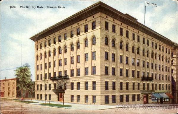 Front: 1888. The Shirley Hotel, Denver, Colo. SHIRLEY Back: 50 TWO CENT. THIS SPACE CAN BE USED FOR A WRITTEN MESSAGE, USING ONE-CENT STAMP