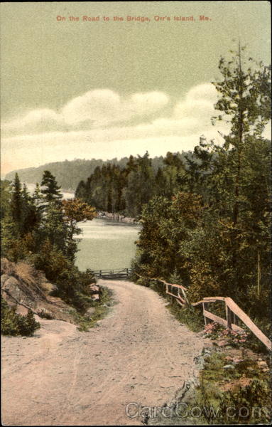 Front: On the Road to the Bridge, Orr's Island, Me. Back: Published in Saxony by G. W. Morris, Portland, Maine. For Message One Cent for United States and Island Possessions, Cuba, Canada and for Foreign. 96035