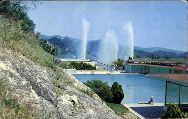View of Natural Geyser water pool and geysers. Calistoga, California.