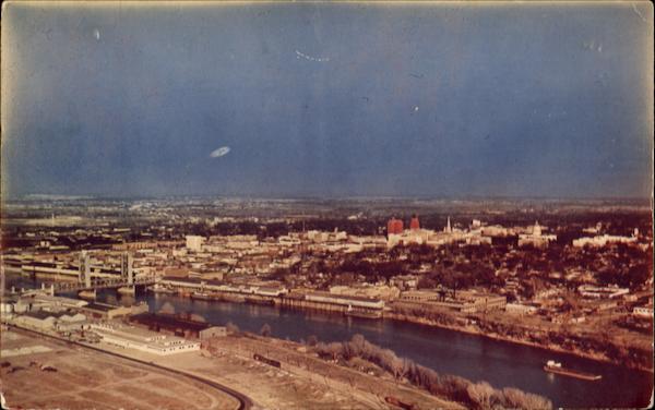 | A modern industrial and Residential Metropolis. An air view of modern Sacramento showing in the foreground part of the industrial area. There are over 500 manufacturing plants in Sacramento which is the center of California's important food processing industry |