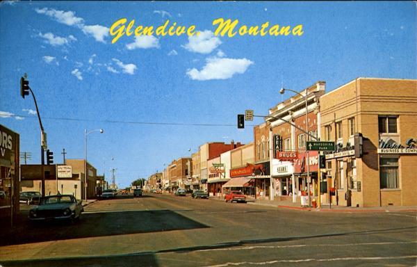 Glendive, Montana. Business district on Merril. The city of Glendive is located in eastern Montana.