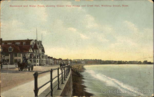 Boulevard and Water Front, showing Ocean View House and Crest Hall, Winthrop Beach, Mass.