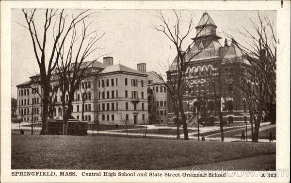 Front: SPRINGFIELD, MASS. Central High School and State Street Grammar School A 362 Back: Published by Geo. S. Graves, Springfield, Mass. and West Harpswell, Me PHOTO-TYPE For Message 77