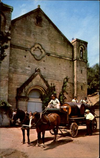 Front of the Historic Paul Masson Winery in the Santa Cruz Mountains, California. "Good Wine Makes Good Friends".