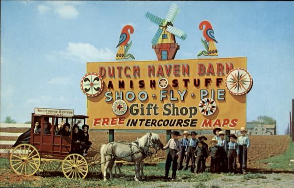 | 8 Miles East of Lancaster, Penna. Intercourse, Pa. - On Route 340 Soundersburg, Pa. - U. S. Route 30. Invites you to enjoy Penna. Dutch Cooking served in the Heart of the Amish Country. Chicken potpie, pork and sauerkraut, Amish-style turkey filling, or Black Angus steaks can be enjoyed every day of the year at the place that made shoo-fly pie famous. A unique gift shop featuring Penna. Dutch items and foods. - Mail orders filled - Guides available for touring the Amish Country. |