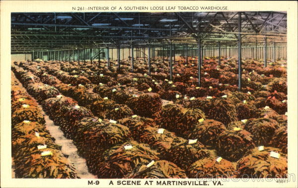 N- 261:-INTERIOR OF A SOUTHERN LOOSE LEAF TOBACCO WAREHOUSE. М-9 A SCENE AT MARTINSVILLE, VA. 45611