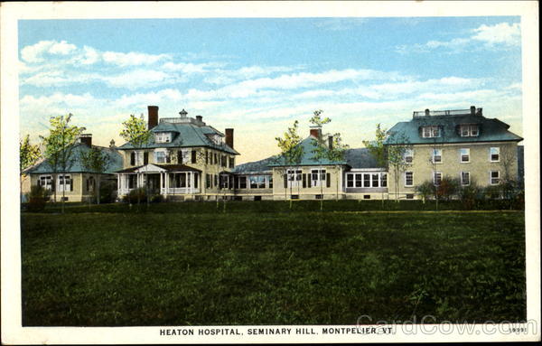 Front: 19991 HEATON HOSPITAL, SEMINARY HILL, MONTPELIER, VT. Back: POST CART PUBLISHED BY BUSWELL'S BOOK STORE MONTPELIER, VT, AMERICAN ART COLORED TE CAC