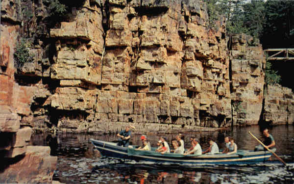| Competent guides indicate the points of interest as flat bottomed boats carry visitors downstream on the AuSable River as it flows toward Lake Champlain. This world renowned scenic wonder has been open to the public since 1873 and is visited annually by s |