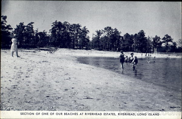 Front: SECTION OF ONE OF OUR BEACHES AT RIVERHEAD ESTATES, RIVERHEAD, LONG ISLAND Back: MERE MADE IN USA CAL