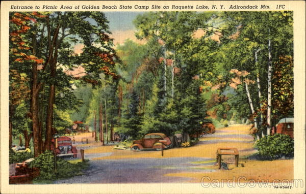 Entrance to Picnic Area of Golden Beach State Camp Site on Raquette Lake, N. Y. Adirondack Mts.