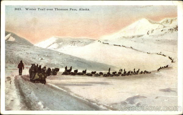 The Winter Trail over Thomson's pass is a scene of busy activity when weather conditions are favorable for travel. Freight can be much easier handled on the winter trail than by wagon or pack animals in summer