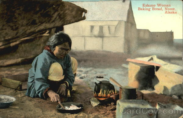 Eskimo Woman Baking Bread