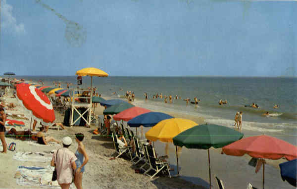 VIRGINIA BEACH, VIRGINIA Inviting white sand and rolling surf offer the vacationists fun and relaxation at beautiful Virginia Beach. Color Photo by T. L. Rowe Pub. by Rowe Distributing, Norfolk 9, Virginia S-1445-7 Address