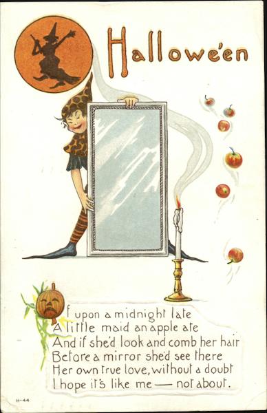Of upon a midnight late A little maid an apple ate And if she'd look and comb her hair Before a mirror shed see there Her own true love, without doubt I hope it's like me - not about.