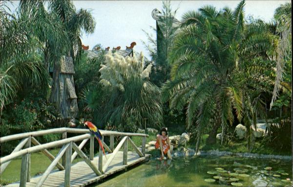 A beautiful Wahini gazes dreamily along side Tiki Lagoon at exotic Tiki Gardens, on Indian Rocks Beach, situated between Clearwater and St. Petersburg, Florida.