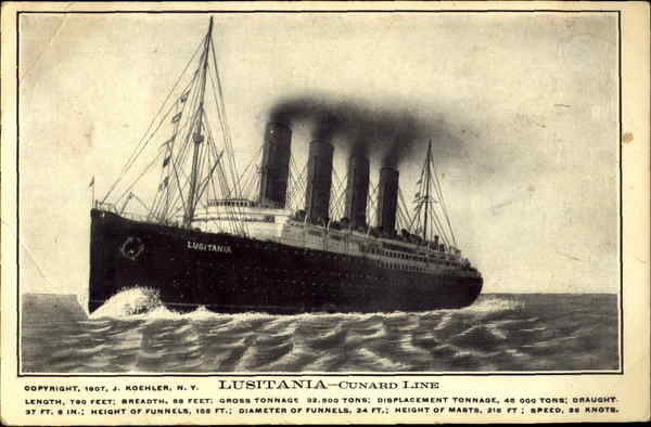 37 FT, 6 IN.; HEIGHT OF FUNNELS, 155 FT.; DIAMETER OF FUNNELS, 24 FT.; HEIGHT OF MASTS, 216 FT; SPEED, 26 KNOTS.