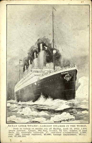 OCEAN LINER TITANIC LARGEST STEAMER IN THE WORLD.