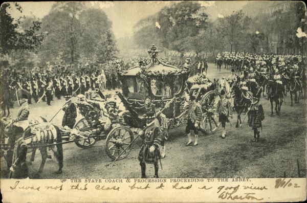 THE STATE COACH & PROCESSION PROCEEDING TO THE ABBEY.