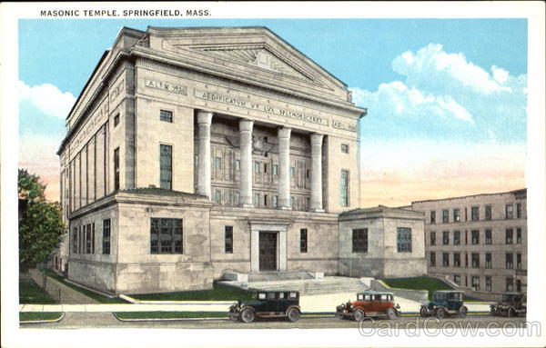The magnificent building accommodates the meetings and activities of thirty-three Masonic Lodges. It is owned by the Springfield Masonic Hall Association. The cornerstone was laid in 1924. Its architecture were McClintock & Craig of this city. The cost was $1,500,000. It has four lodge rooms, and a Consistory Hall, which occupies the top floor. The Temple is fitted with lounge rooms, and with banquet halls for taking care of large or small gatherings. There are pipe organs in two of the lodge rooms, and a larger pipe organ in the Consistory Hall. |