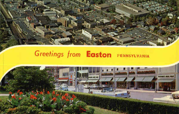 Front: Greetings from Easton PENNSYLVANIA KUFRATEPAN PSORS HOS STEIN'S SHOE SHOP Back: The Scheller Co., Hackettstown, N. J. 81586 Address