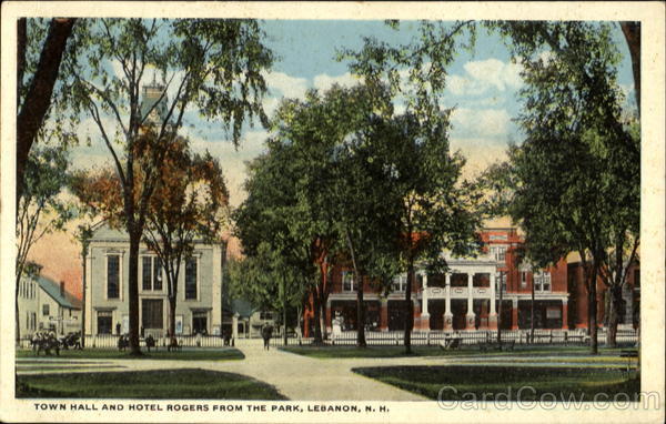 TOWN HALL AND HOTEL ROGERS FROM THE PARK, LEBANON, N. H,