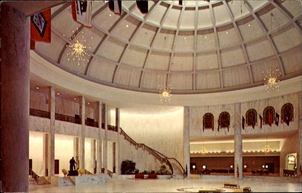 | Rotunda ? The rotunda of Founders Hall, with its magnificent Vermont marble, chandeliers of Austrian crystal, gold-bronze grillwork arches, grand staircase and flags of the 50 states, is the heart of Milton Hershey School, Hershey, Pennsylvania. |