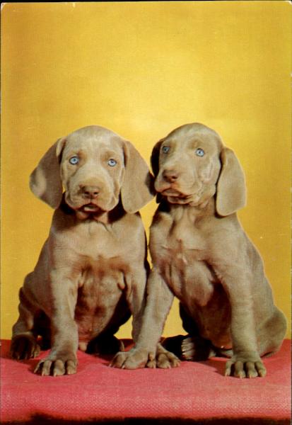 No. 701 S-99430 THE BROTHERS (Weimaraner Pups) Ektachrome by Alan Felix Genuine Natural Color Made by DEXTER PRESS, Inc., West Nyack, N. Y. 150 POST CARD