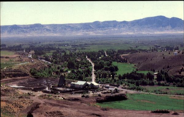 | Beef and timber built this central Lake County city on the chewaucan River. The outlaying ranches and the city boast a population of about 450 people. Coglan rim is in the background; which is named for John D. Coughlin, an early day homesteader. |