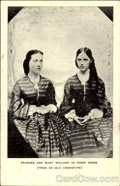 Front: FRANCES AND MARY WILLARD IN THEIR TEENS (FROM AN OLD AMBROTYPE) Back: 2 и со 30787N 607 MADE IN USA. BY E. C. KROPP Co., MILWAUKEE, WIS-CIA Jamesmelle less