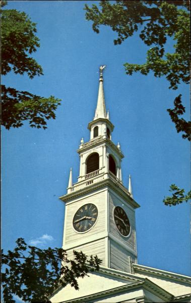 Christopher Wren type spire, topped by a gilded weathercock weathervane dated about 1752, on the first Congregational church in Hadley, Mass. This church was built in 1808 and 1809, the third since the founding of the church in 1659.