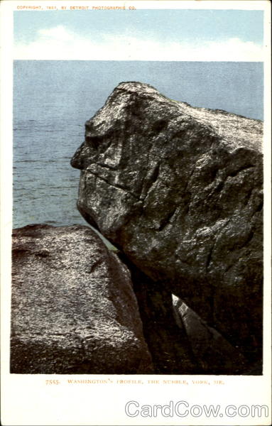 Front: COPYRIGHT, 1904, BY DETROIT PHOTOGRAPHIC CO. 7555- WASHINGTON'S PROFILE, THE NUBBLE, YORK, ME. Back: AND CANADA, FOREIGN, TWO CENTS. THIS SIDE FOR THE ADDRESS.