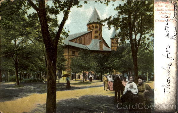 Front: Thanks for 508 Close of an Auditorium Meeting Ocon Grove, N. you Back: Souvenir Post Card Co., New York and Berlin. Post Card-B ASBURY PARK € 30AM 1906 N.J. N 1790 NECENZ miss Elsie muury 128 Washingtond Elizabeth N.J.