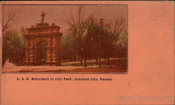 Front: G. A. R. Monument in City Park, Junction City, Kansas. Back: Martin K. Thomen, Publisher. Junction City, Kansas. U.S.,CANADA & FOREIGN COUNTRIES This side for the address.