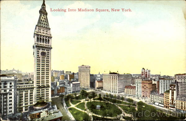 Front: Looking Into Madison Square, New York. Back: THIS SPACE MAY BE USED FOR WRITING GREAT BRITAIN FOREIGN: Success Postal Card Co., Publ., New York. No. 1065