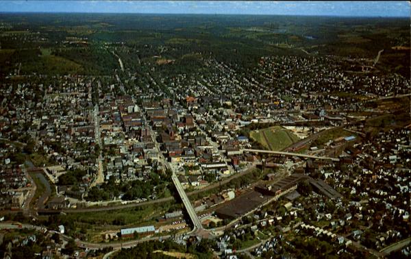 Aerial view of BUTLER, Pa., an industrial center north of Pittsburgh, located at intersection of U. S. Rt. 422 and State Routes 8 & 68. Color photo by Richard C. Miller 38422 Natural Color Card Published by Modern-Ad, Butler, Pa. 24