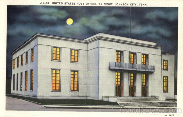 J.C.53 UNITED STATES POST OFFICE, BY NIGHT. JOHNSON CITY. TENN. TES OST OFETCE 1427