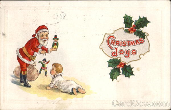 Front: GIRISTMAS Joys Back: 3- POST CARE OR AN GISTERED GREETINGS and a Happy New Year Merry Xmas Marguerite B. S. 650 Miss Etta minor Barnard vt.