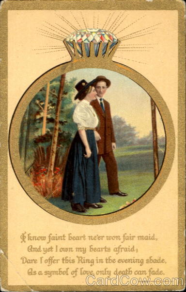 I know faint heart ne'er won fair maid, And yet I own my hearts afraid, Dare I offer this Ring in the evening shade, As a symbol of love, only death can fade.