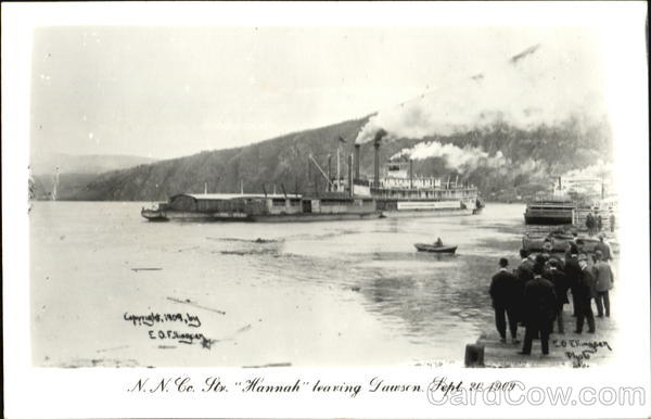 Copyright, 1909, by EO.Flingen NN. Co. Str. "Hannah" leaving Dawson, Sept. 20 1909 Co Elingen 2.6.