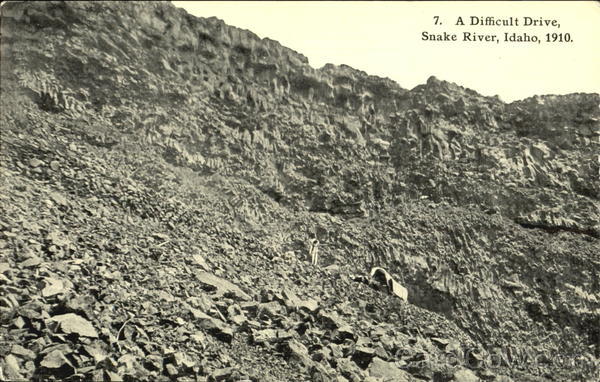 The canyon here is nearly a thousand feet deep and is certainly a rough rocky drivs as shown more plainly in the foreground