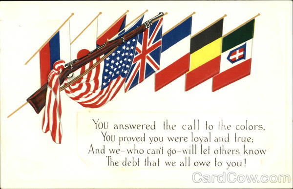 Front: 13 You answered the call to the colors, You proved you were loyal and true; And we-who can't go-will let others know The debt that we all owe to you! Back: LOYALTY SERIES ADDRESS